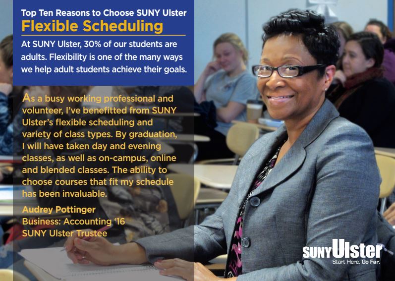 Ulster offers daytime, evening, weekend and online classes to help you accomplish your educational goals. Did you know, we also offer seven different start dates to help get you going. See how Audrey Pottinger used every scheduling option to get herself across the finish line.